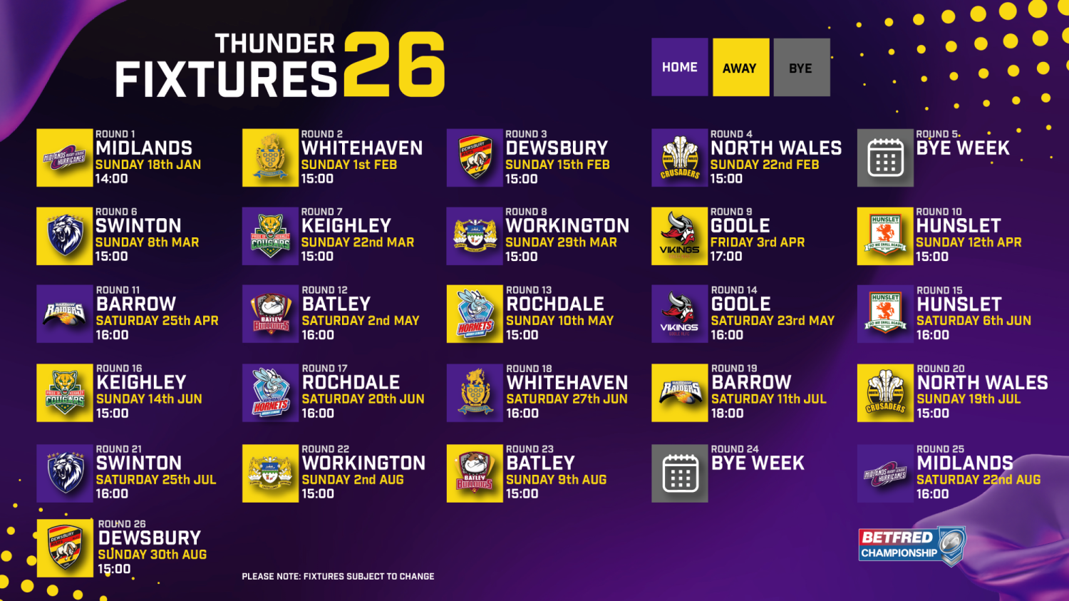 Newcastle Thunder are pleased to reveal their full fixture list for the 2026 Betfred Championship season, marking the beginning of an exciting new chapter for the club in the newly formatted Betfred Championship.